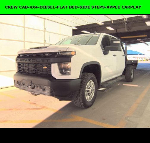 New ARRIVAL PHOTOS COMING SOON!, iPhone/ Android Navigation compatible, Automatic Headlights, Rearview Camera, Bluetooth®, Clean History Report!, 1 Owner, Towing Package / Hitch, Bedliner, Running Boards, Mutli-function Steering Wheel, 4X4, Includes the Remainder of the Factory Warranty, Extended Warranty Available, Apple Carplay, Remote Keyless Entry, Andoid Auto, Premium Delivery Service Available, FLAT Bed, Silverado 2500HD Work Truck, 4D Crew Cab, Duramax 6.6L V8 Turbodiesel, 10-Speed Automatic, 4WD, Summit White, Jet Black w/Vinyl Seat Trim, 2-Speed Electronic Shift Transfer Case, 220 Amp Alternator, 3.5″ Diagonal Monochromatic Display DIC, Black Front Bumper, Black Front Grille, Black Mirror Caps, Black Rear Bumper, Bluetooth® For Phone, High-Visibility Vertical Trailering Mirrors, Locking Tailgate, Manual Tailgate Function w/No EZ Lift, Manual Tilt-Wheel Steering Column, Power Rear Windows w/Express Down, Preferred Equipment Group 1WT, Rear 60/40 Folding Bench Seat (Folds Up), Rubberized-Vinyl Floor Covering, Snow Plow Prep/Camper Package, Solar Absorbing Tinted Glass, Standard Tailgate, Suspension Package.