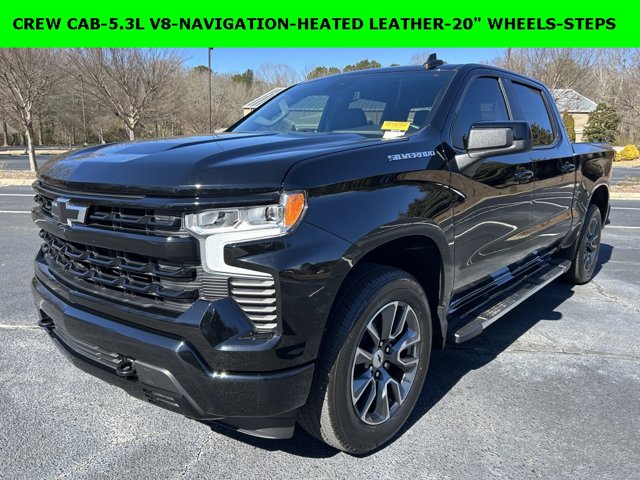 iPhone/ Android Navigation compatible, Automatic Headlights, Rearview Camera, Bluetooth®, Leather, 1 Owner, Towing Package / Hitch, Bedliner, Running Boards, Heated Front Seats, Heated Steering Wheel, Remote Starter System, EZ Lift and Lower Tailgate, LED Cargo Box Lighting, Mutli-function Steering Wheel, Includes the Remainder of the Factory Warranty, Extended Warranty Available, Apple Carplay, ONSTAR, Push Button Start, Remote Keyless Entry, Andoid Auto, Premium Delivery Service Available, Silverado 1500 RST, 4D Crew Cab, EcoTec3 5.3L V8, Black, Jet Black w/Leather-Appointed Front Seat Trim, 10-Way Power Driver Seat w/Lumbar, 12.3″ Multicolor Reconfigurable Digital Display, 120-Volt Interior Power Outlet, 170 Amp Alternator, 3.23 Rear Axle Ratio, 40/20/40 Front Split-Bench Seat, 6-Speaker Audio System, 6″ Rectangular Chrome Tubular Assist Steps (LPO), All-Star Edition, Auto-Locking Rear Differential, Automatic temperature control, Bluetooth® For Phone, Chevrolet Connected Access Capable, Chevytec Spray-On Black Bedliner, Convenience Package, Deep-Tinted Glass, Dual Rear USB Ports (Charge Only), Dual-Zone Automatic Climate Control, EZ Lift Power Lock & Release Tailgate, Following Distance Indicator, Forward Collision Alert, Front dual zone A/C, Front Frame-Mounted Black Recovery Hooks, Front LED Fog Lamps, Front Pedestrian Braking, HD Rear Vision Camera, Heated Driver & Front Outboard Passenger Seats, Heated front seats, Heated Power-Adjustable Outside Mirrors, Heated Steering Wheel, High Capacity Suspension Package, High Gloss Black Mirror Caps, Hitch Guidance, Inside Rear-View Mirror w/Tilt, Integrated Trailer Brake Controller, Keyless Open & Start, Lane Keep Assist w/Lane Departure Warning, Leather-Appointed Front Seat Trim, LED Cargo Area Lighting, Low tire pressure warning, Multi-Flex Tailgate, Navigation System, OnStar & Chevrolet Connected Services Capable, Power Front Windows w/Driver Express Up/Down, Power Front Windows w/Passenger Express Down, Power Rear Windows w/Express Down, Preferred Equipment Group 1SP, Protection Package, Rear 60/40 Folding Bench Seat (Folds Up), Rear Wheelhouse Liners, Remote keyless entry, Remote Vehicle Starter System, SiriusXM w/360L, Standard Tailgate, Steering Wheel Audio Controls, Theft Deterrent System (Unauthorized Entry), Trailering Package, Wheels: 20″ x 9″ Painted Aluminum, Wi-Fi Hot Spot Capable, Wrapped Steering Wheel.